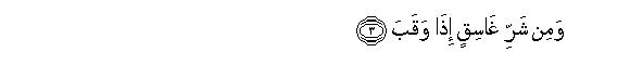 5After seeking Allah's refuge generally from the evil of the creatures, now prayer is being taught for seeking refuge from the evil of some special creatures in particular. The word ghasiq in the verse literally means dark. Thus, at another place in the Qur'an it has been said: "establish the salat from the declining of the sun to the darkness of the night (ila ghasaq-il- lain." (Bani lsra'il: 78), and wagab means to enter or to overspread. Prayer has been taught to seek refuge in particular from the evil of the darkness of night, for most of the crimes and acts of wickedness are committed at night, harmful animals also come out at night, and the night was a very dreadful thing in the days chaos prevailed in Arabia when these verses were revealed. Raiders came out in the dark of night and plundered and destroyed settlements. The people who were thinking of putting the Holy Prophet (upon whom be peace) to death, also made their secret plans at night, so that the murder could not be detected. Therefore, command was given to seek Allah's refuge from the evils and calamities which descend at night. Here, the subtle relation that exists between seeking refuge from the evil of the dark night with the Lord of breaking dawn cannot remain hidden from anybody having insight and understanding.